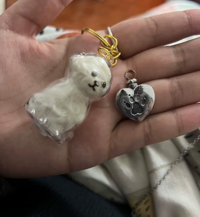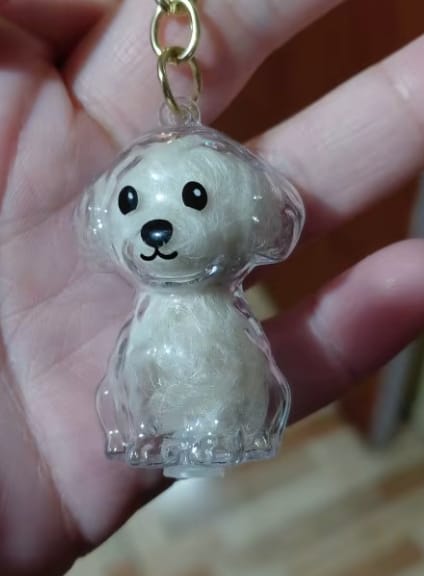 I honestly didn’t expect this little keychain to mean so much to me. I added a small piece of fur from Bella, my poodle, and now I carry her with me every day.